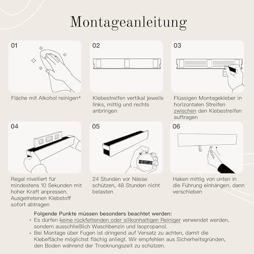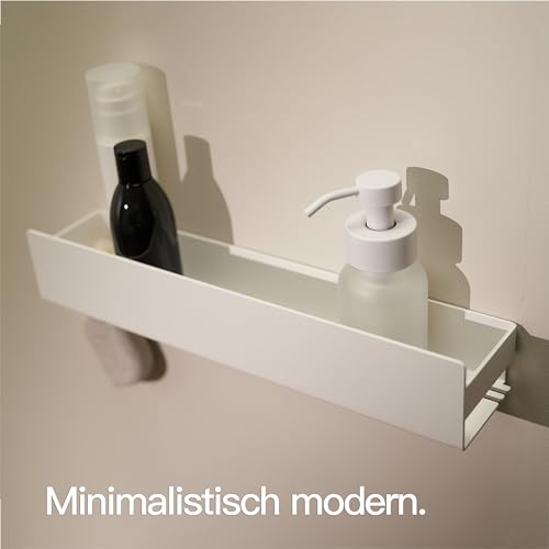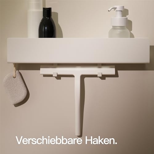 Designfabrik Hamburg - رف حمام يثبت على الحائط بدون حفر لحمل الشامبو وتنظيم مستلزماتك مزود 2 خطاف من ديزاين هامبورج | مناسب كمنظم للحمام | لون أبيض مطفي I مقاس 42 سم