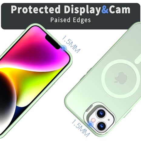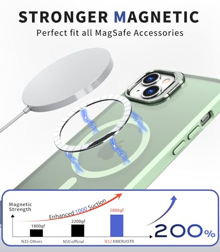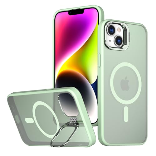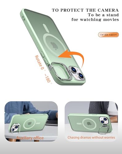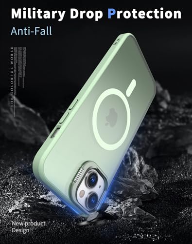 Generic - جراب حماية بتصميم مغناطيسي للشحن اللاسلكي مع مسند للكاميرا عسكري رفيع مضاد للصدمات متوافق ايفون 15 اخضر مينت