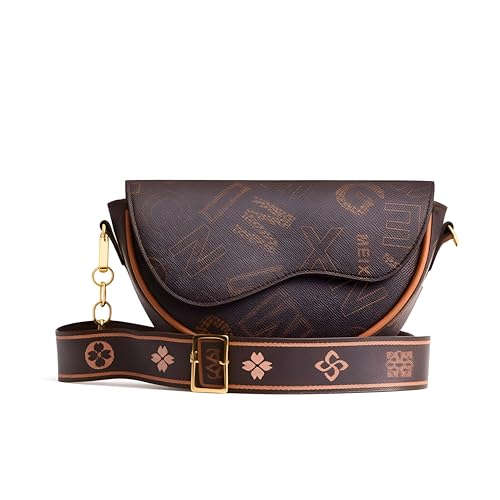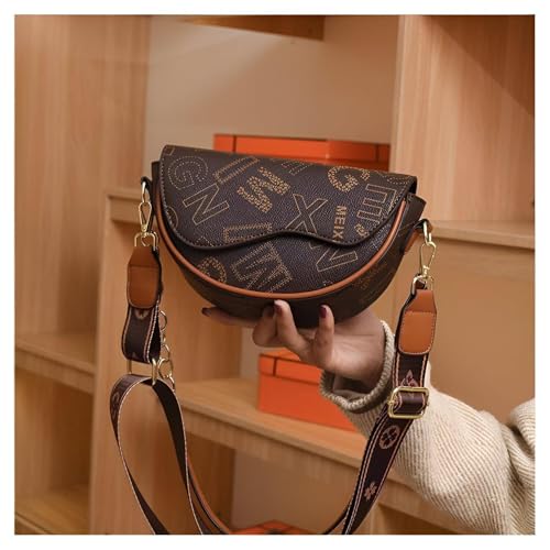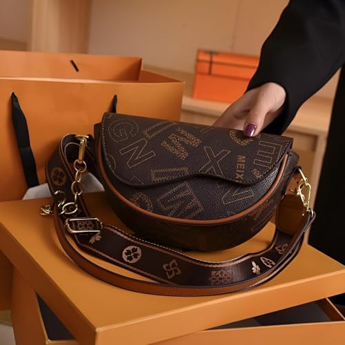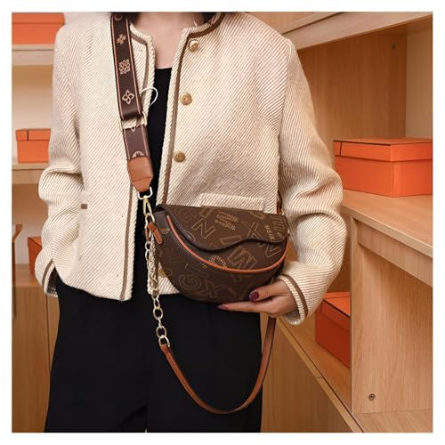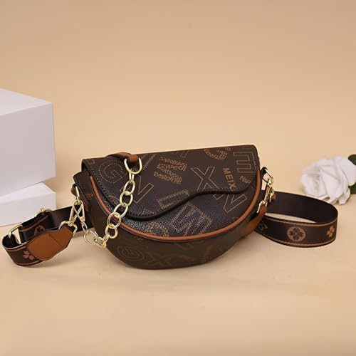 Generic - شنطة كروس من القماش بتصميم مونوغرام بلون بني مع سلسلة ذهبية، اختيار انيق للنساء المهتمات باكسسوارات الموضة الفاخرة