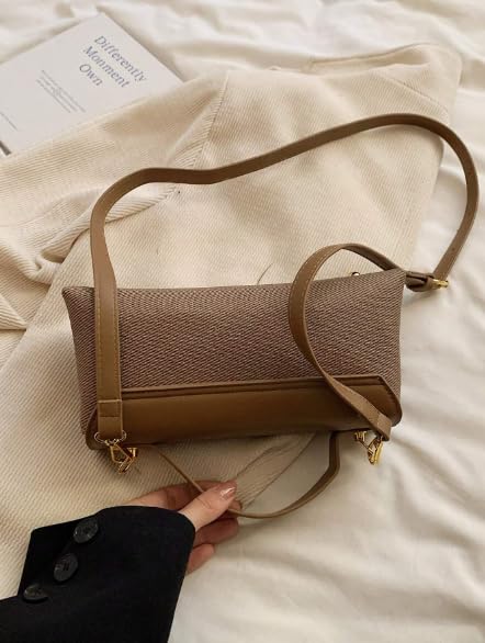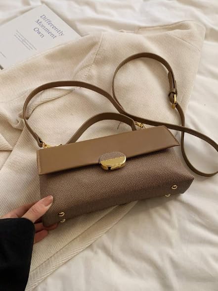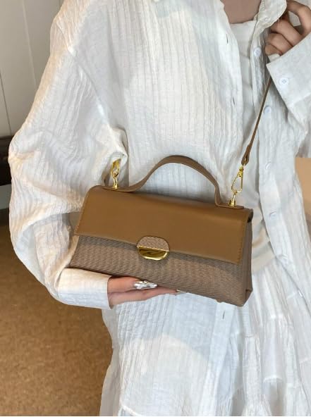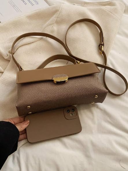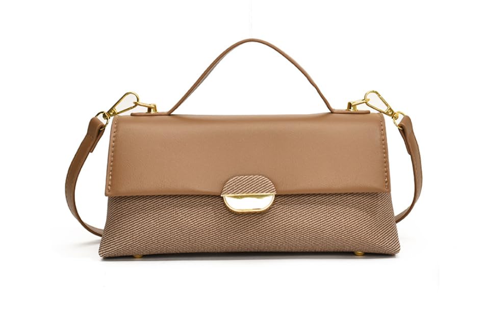 Generic - شنطة يد كروس من ديزاينر، شنطة كتف جلدية مع قطع معدنية ذهبية