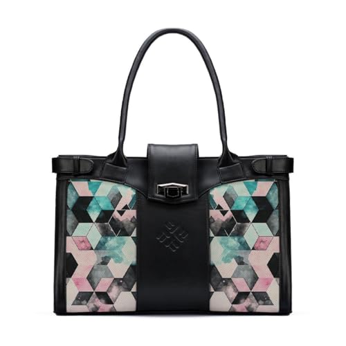 Generic - شنطة يد بتصميم هندسي مع مقبض مزدوج بلون تركواز وزهري، شنطة كتف عصرية