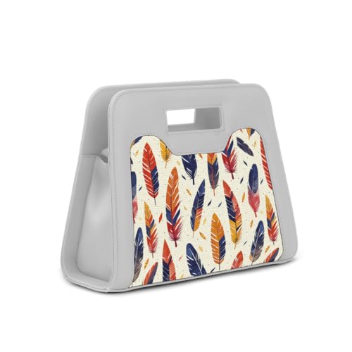 Generic - شنطة يد مصممة بنمط ريش، رمادي وابيض، طباعة قماشية متعددة الالوان