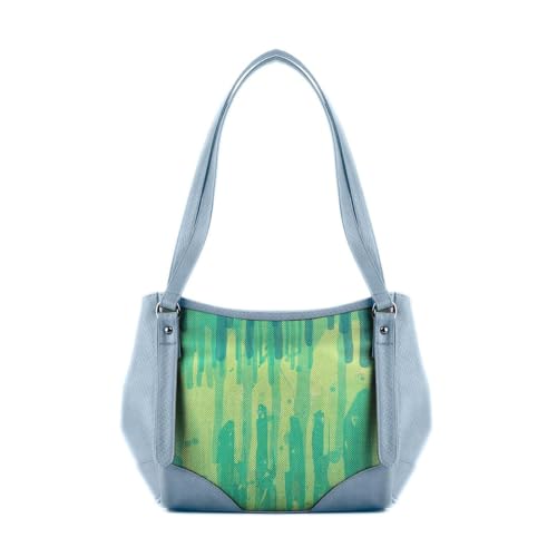 Generic - شنطة يد كبيرة توت بحزام كتف من الجلد بلون أزرق مع لوحة بنمط أخضر، شنطة يد عصرية