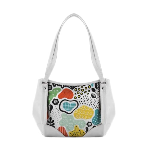 Generic - شنطة يد كبيرة توت من الجلد الأبيض بنمط تجريدي ملون وطباعة هندسية عصرية
