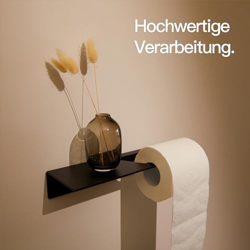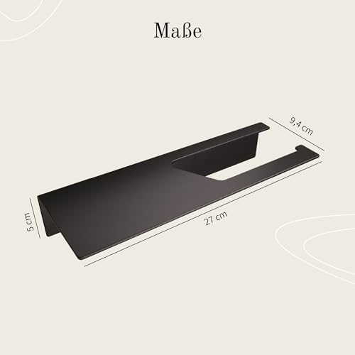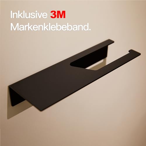 Designfabrik Hamburg - حامل مناديل تواليت بدون ثقب، حامل بكرات مناديل المرحاض ذاتي اللصق بتصميم عصري، اكسسوارات الحمام من من ديزاين فابريك هامبورج - (أسود غير لامع، مع رف)