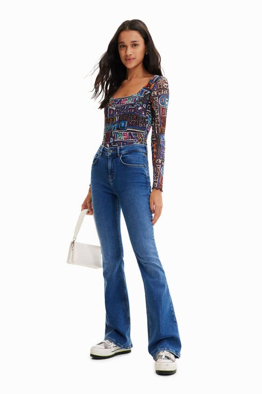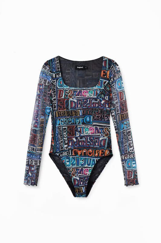 Desigual - ديسيجوال سالوبيت بكباسين مطبوع عليه شعار تول ارتي، مقاس L، لون اسود