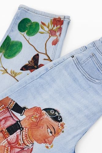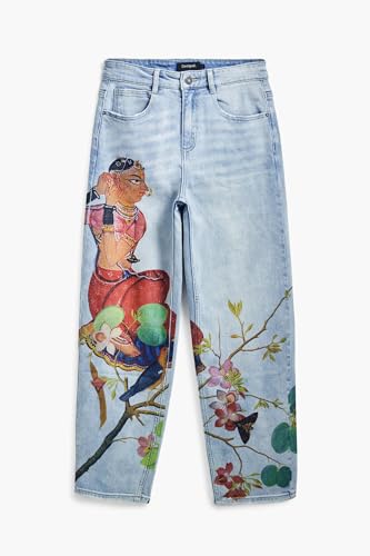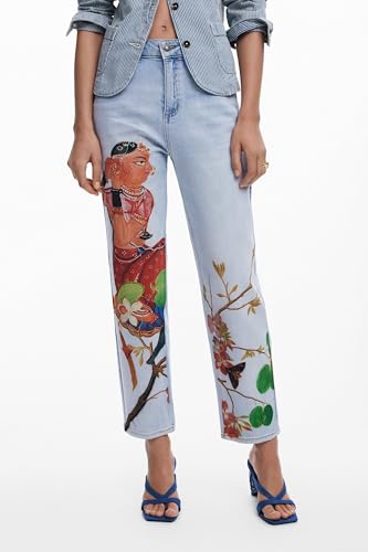 Desigual - بنطلون جينز بوي فريند تصميم هندي للنساء من ديسيجوال