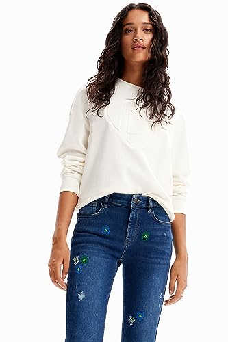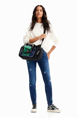 Desigual - ديسيجوال بنطلون جينز ضيق بوش اب مطرز للنساء