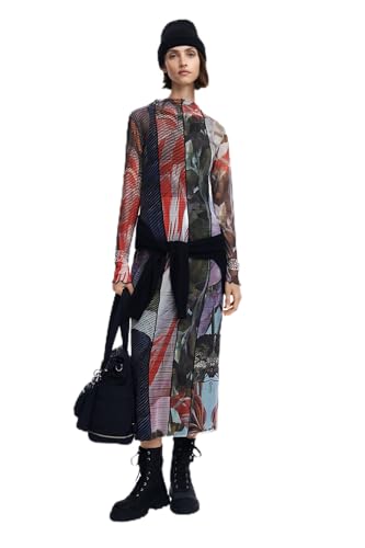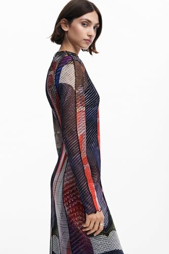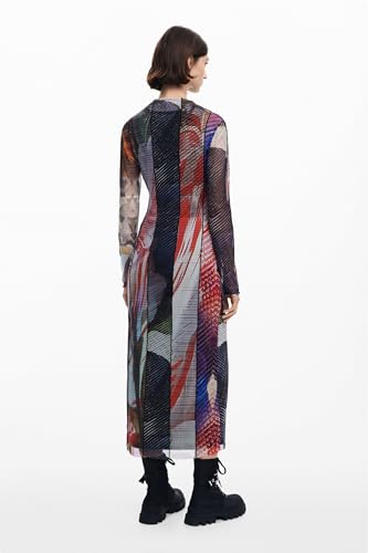 Desigual - ديسيجوال فستان متوسط الطول من التول مطبوع للنساء