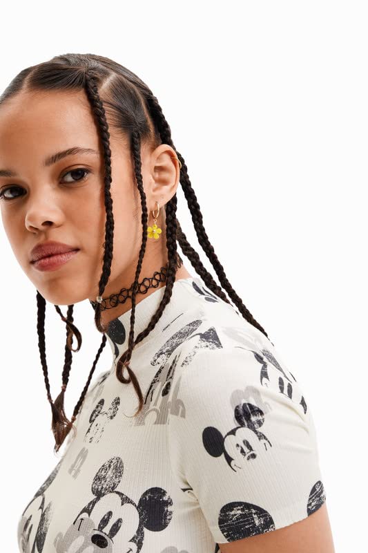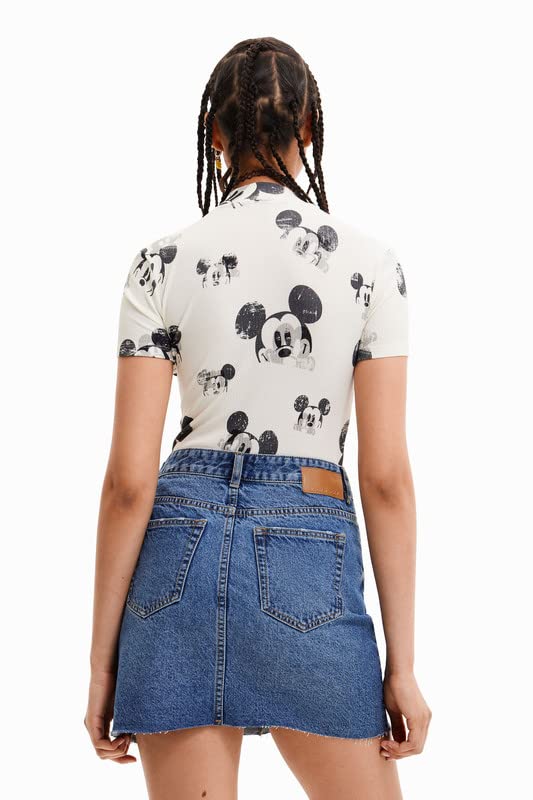 Desigual - ديسيجوال جسم مطبوع عليه ميكي ماوس من ديزني للنساء، مقاس XS أبيض