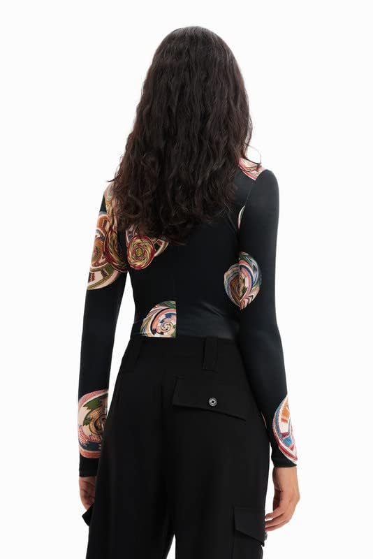 Desigual - ديسيجوال جسم بتصميم دوائر رفيعة للنساء مقاس L لون اسود