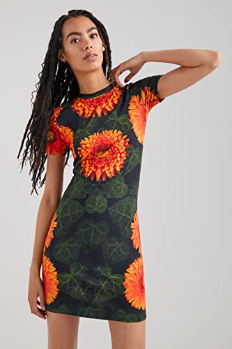 Desigual - ديسيجوال فستان كاجوال فيست الما للنساء, برتقالي وأخضر