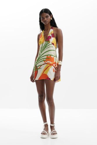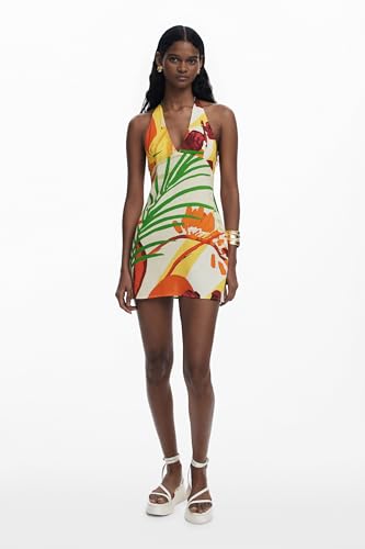 Desigual - فستان قصير بنمط استوائي للنساء من ديسيجوال