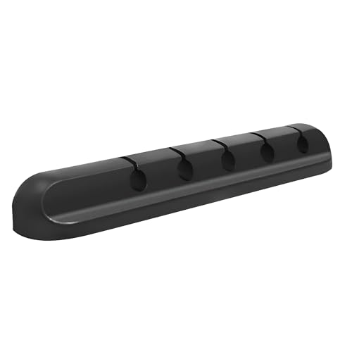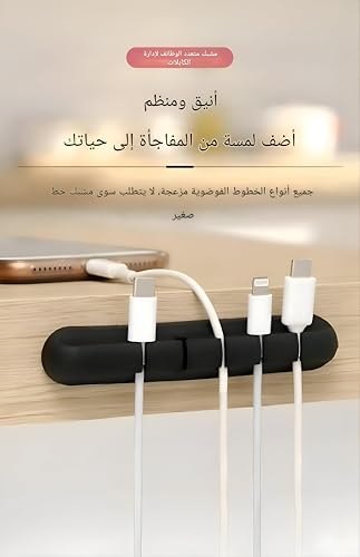 Generic - منظم أسلاك سيليكون أسود بتصميم لاصق قوي مع 5 فتحات لتنظيم كابلات الشحن وسماعات الرأس وأسلاك الكهرباء بشكل نظيف