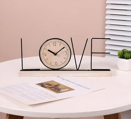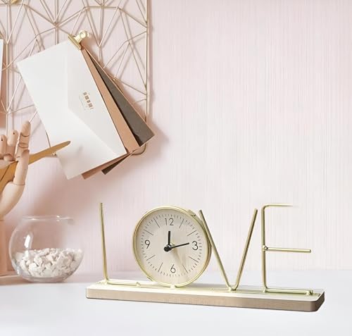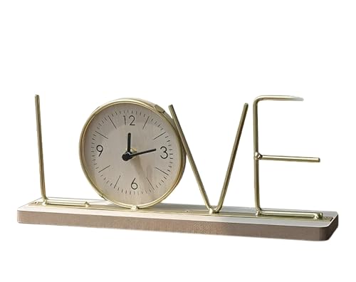 Generic - حامل ساعة للمكتب - تصميم عصري يتميز بقاعدة خشبية وهيكل مطلي بالذهب، مثالي لديكور المنزل او المكتب، هدية فريدة للمناسبات الخاصة (استاند شكل الحب)