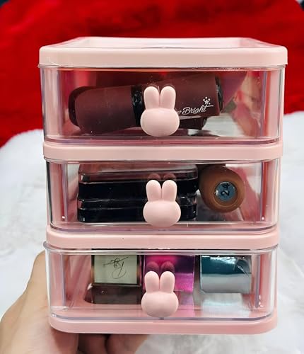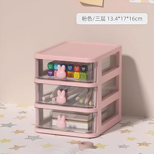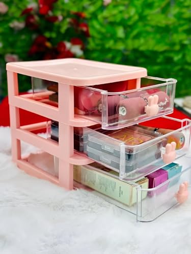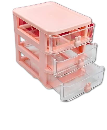 Generic - منظم مكتب، خزانة تخزين مكتبية صغيرة بثلاثة أدراج بتصميم قابل للتكديس للمكياج والمجوهرات والمستلزمات المكتبية والأجزاء الصغيرة الحرفية بلون وردي ناعم