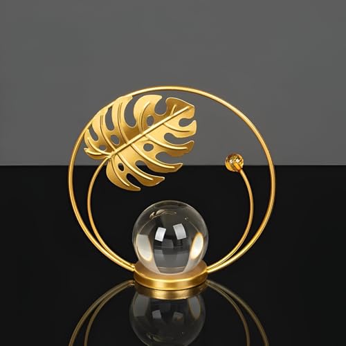 Generic - زينة مكتبية - كرة كريستال ذهبية أنيقة ممزوجة بديكور نباتي عصري لتقدم قطعة فنية يدوية راقية، مناسبة لإضافة سحر إلى مكاتب العمل وغرف النوم ومساحات الحديقة