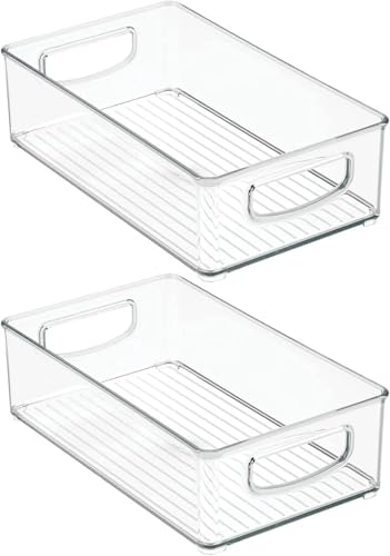 Generic - منظم درج ثلاجة ومكتب – صندوق تخزين شفاف متعدد الاستخدام للأدوات المنزلية والمكتب والفواكه والخضار (شفاف 2 قطعه)