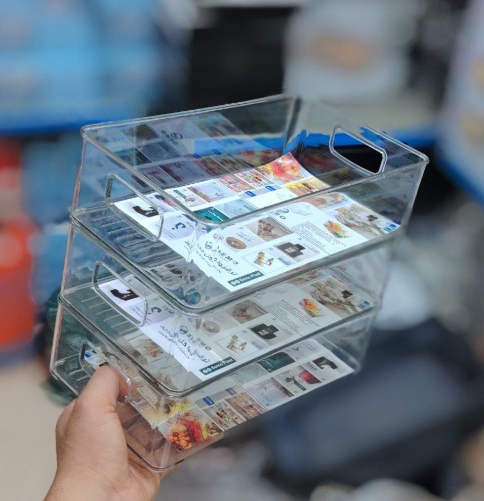 - رؤية واضحة للمحتويات: تصميمه الشفاف يتيح رؤية جميع المحتويات بسرعة، مما يقلل الفوضى ويسهّل الوصول إلى الأغراض.