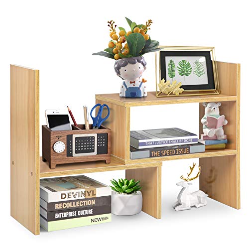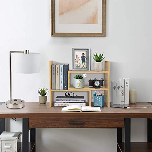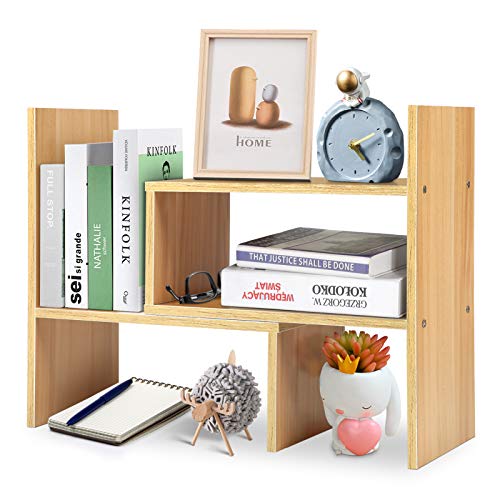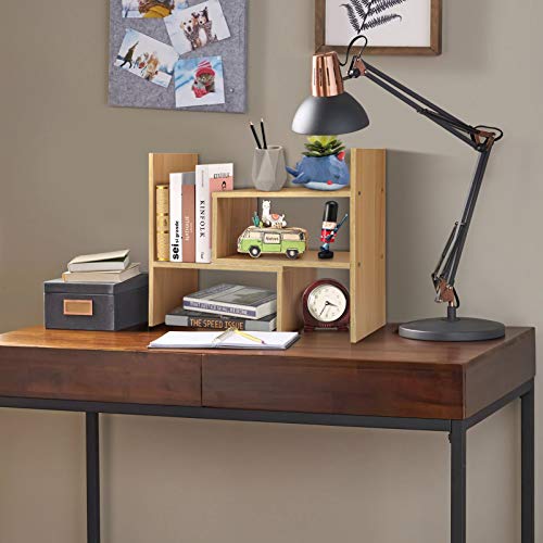 Cocoarm - منظم رف مكتبي، رف كتب لسطح المكتب، رف تخزين للطاولة يمكنك تركيبه بنفسك، رف عرض خشبي، منظم مكتب قائم بذاته، سعة كبيرة، حامل متعدد الاغراض قابل للتعديل، رف كتب