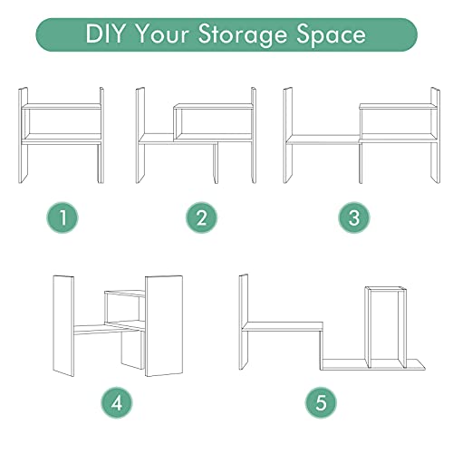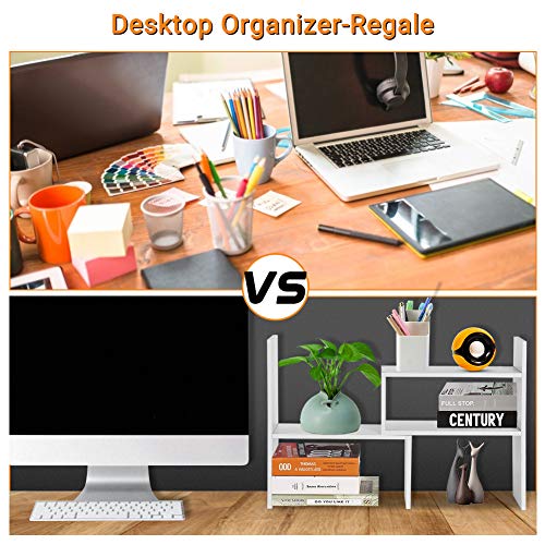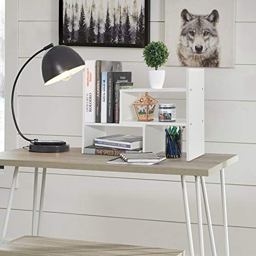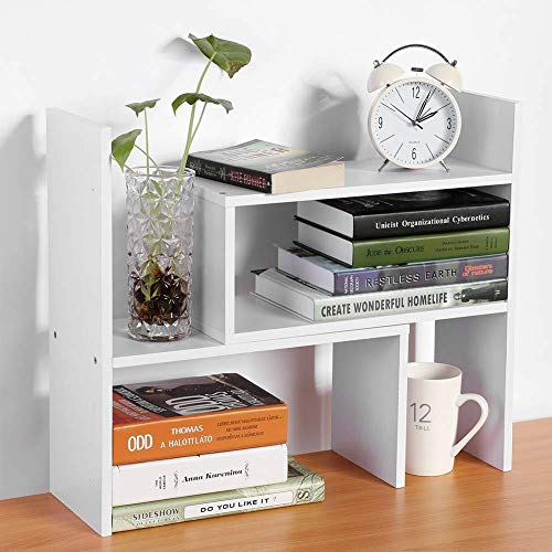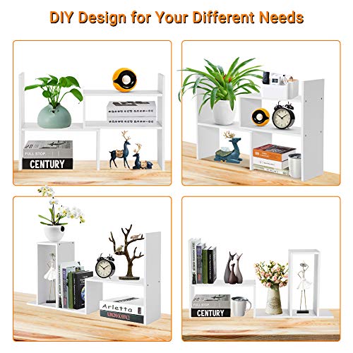 Greensen - رف كتب لسطح المكتب قابل للتعديل، رف تخزين خشبي يمكنك تركيبه بنفسك، رف كتب عصري صغير الحجم، رف عرض لسطح الطاولة للاستخدام المنزلي والمكتب (ابيض)