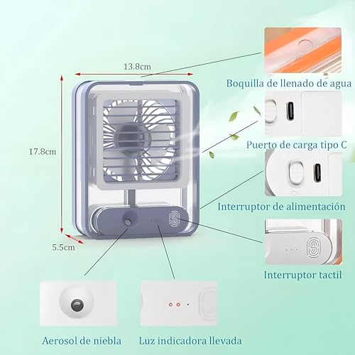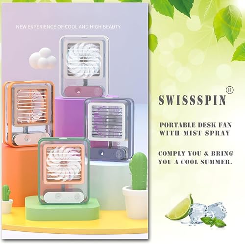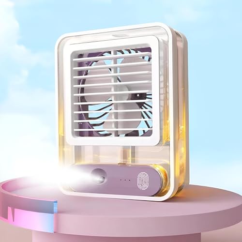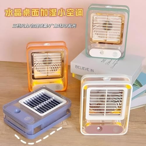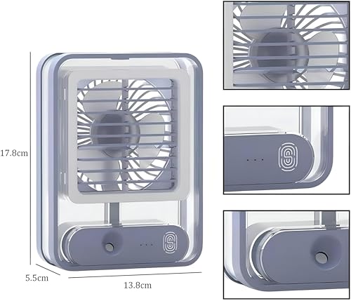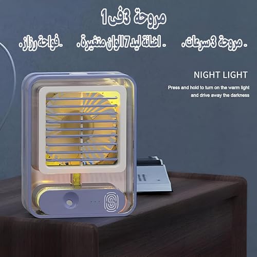 Generic - مروحة تبريد لسطح المكتب، استمتع بأجواء الواحات الرائعة ذات النسيم العليل مع مبرد الهواء المدمج ومرطب الهواء وموزع الروائح العطرية. يعمل بمنفذ USB بسرعات قابلة للتعديل وفوهة رذاذ ووظيفة إضاءة ليلية ليد