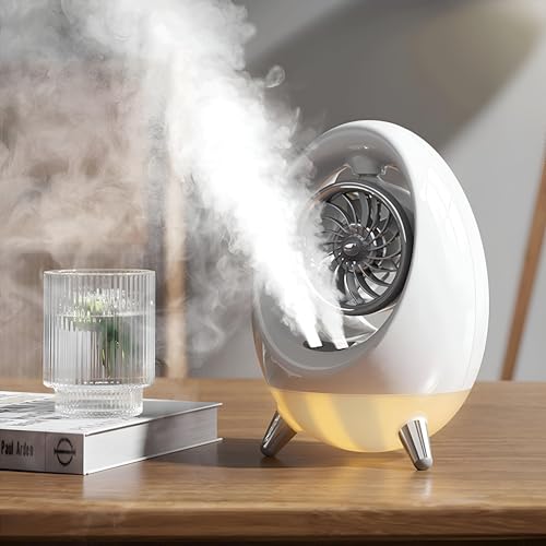 Generic - مروحة سطح المكتب - مكيف هواء وحامل عطر متعدد الاستخدامات مع ضوء ليلي، محمول قابل لإعادة الشحن بمنفذ USB، مثالية لمساحات العمل وغرف النوم والغرف الصغيرة، مع تشغيل سهل لوضع الراحة