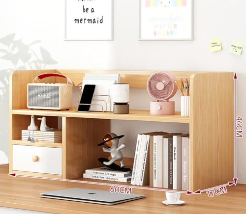 AliAliAli - منظم سطح المكتب عرض مكتب متعدد الاستخدامات مع درج لتخزين المنزل والمكتب حامل ملفات خشبي لسطح رف مكتبي لحامل الأدوات المكتبية بني