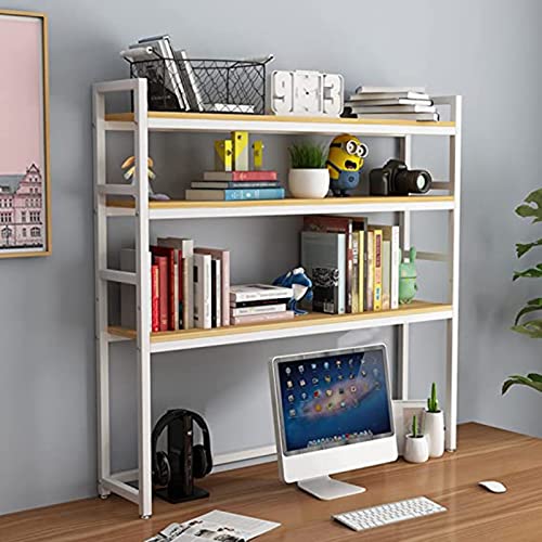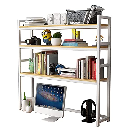 KARPHA - رف تخزين منظم لسطح المكتب - للكتب خزانة كتب من 3 طبقات لمكتب الكمبيوتر خشبي معدني الطاولة للمنزل والمدرسة والمكتب اللون: ابيض C