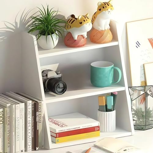 AUSHOPLAH - رف منظم للمكتب A53، خزانة كتب مكتبة، رف تخزين للمكتب، رف كتب خشبي، (أبيض، 30×16.5×33 سم)