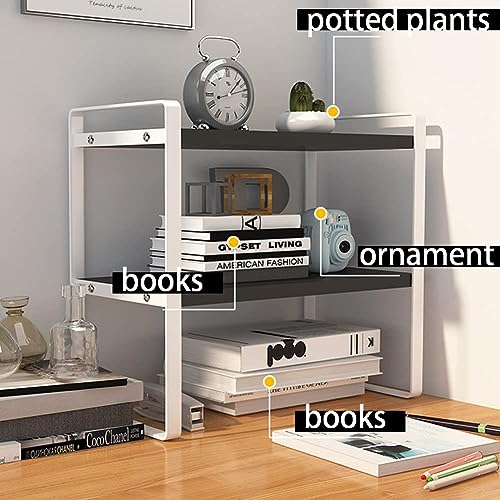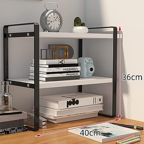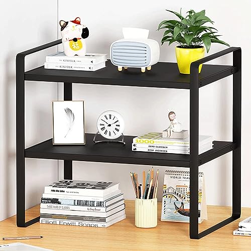 SIDIANBAN - رف منظم لسطح المكتب، رف تخزين مكتبي من طبقتين، رف تخزين مكتبي، رف كتب لسطح المكتب من المعدن والخشب، رف عرض صغير للمكتب والمطبخ وغرفة النوم والحمام والمسكن (اسود)