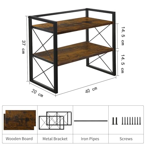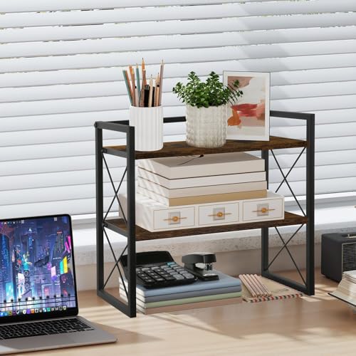 DUSLANG - منظم ارفف سطح المكتب، ارفف مكتب من طبقتين، رف تخزين منظم مكتب خشبي ورف عرض قائم بذاته للمكتب والسكن الجامعي والمنزل (ريترو)