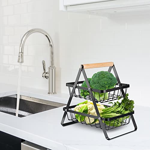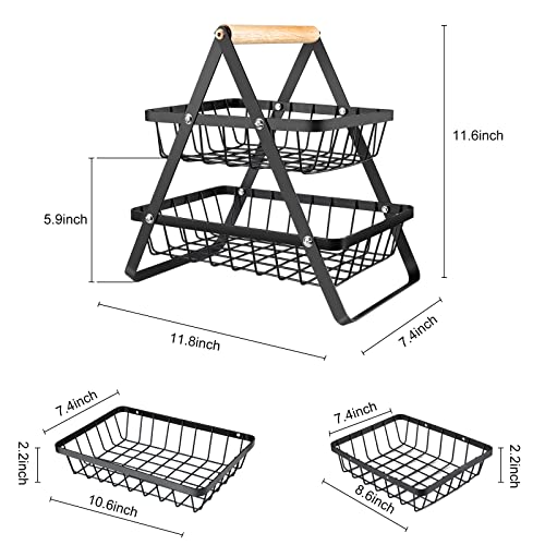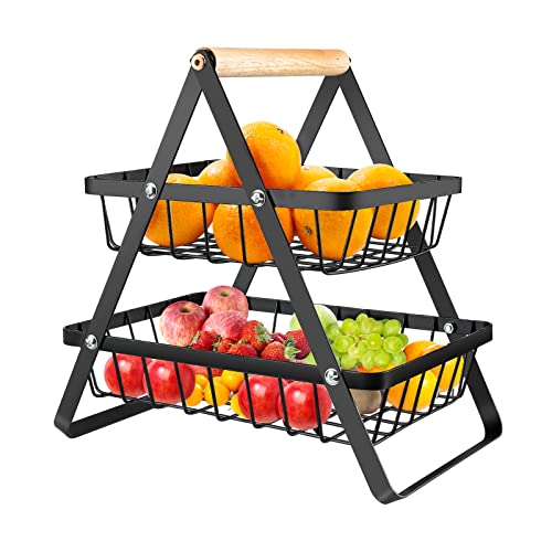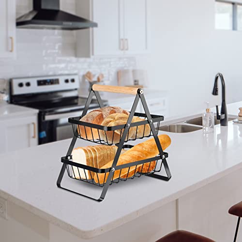 Desoxivi - سلة فواكه محمولة مكونة من طبقتين لسطح الطاولة بولة فاكهة سلكية عياشة لتقديم الخبز حامل تخزين الخضروات لطاولة المطبخ ديسوكسيفي لون أسود حديد معدني