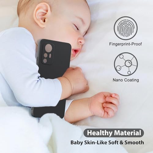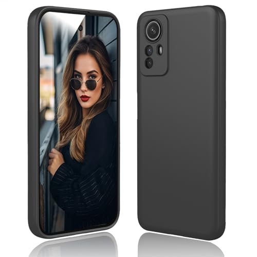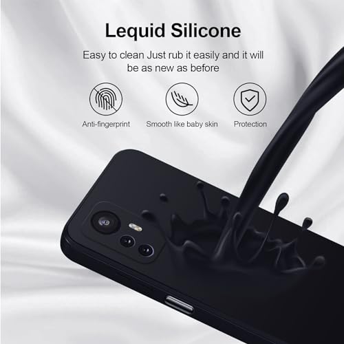 DESSEN - جراب حماية سيليكون سائل مع بطانة من المايكروفايبر مضاد للخدش من البولي يوريثين الحراري الناعم مضاد للصدمات ورفيع ومرن لموبايل شاومي ريدمي نوت 12S شبكة الجيل الرابع 4G من ديسن، أسود