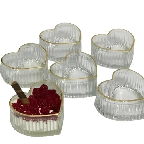 Generic - أطباق عميقة حلوى - عبوة من 6 اوعية غمس زجاجية على شكل قلب مع إطار ذهبي للحلويات السكرية والفواكه والسوشي والوجبات الخفيفة