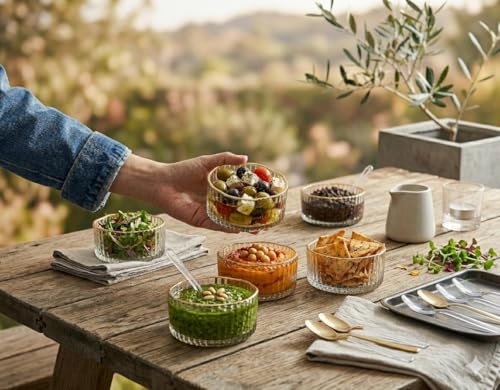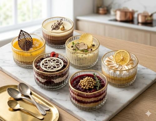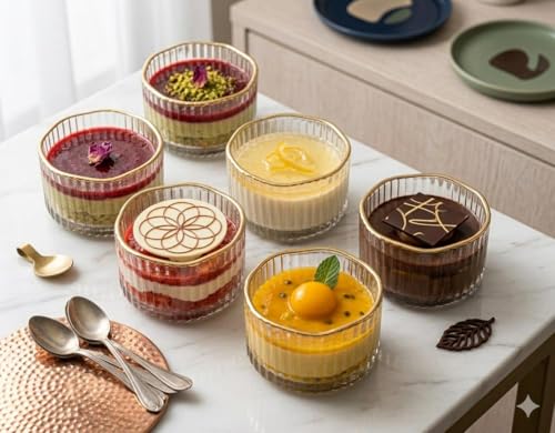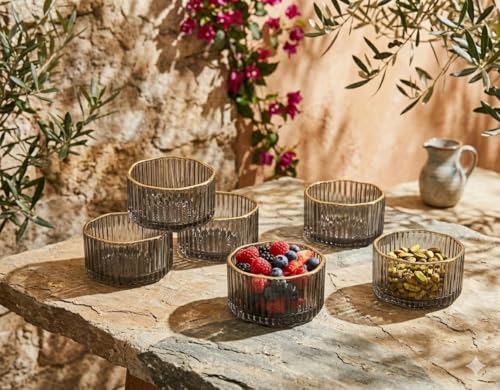 Generic - طقم اطباق حلويات - 6 صواني زجاجية رمادية شفافة مزينة باطار ذهبي، مثالية للمكسرات والشوكولاتة والحلويات، مظهر عصري انيق، متانة عالية، تنظيف سهل