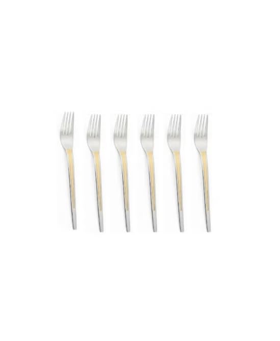 generic - طقم شوك حلويات - 6 قطع من الستانلس ستيل 16 سم بتصميم ذهبي وفضي انيق