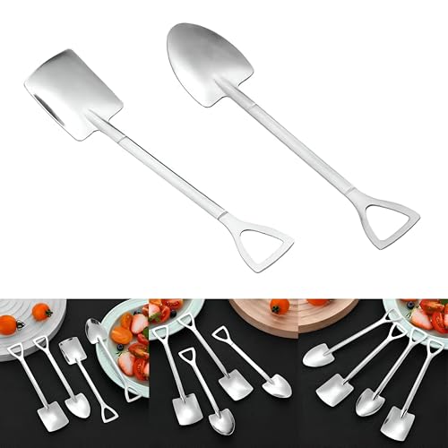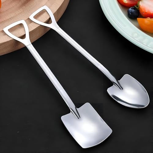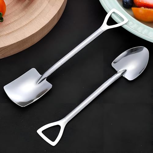 - مجموعة إبداعية من 10 قطع من معالق الجاروف مصنوعة من الفولاذ المقاوم للصدأ وتأتي برؤوس مدببة ومربعة وتجمع بين التصميم الفريد والعملية لتحريك القهوة وتقديم الحلويات وإضفاء لمسة أنيقة على أي مائدة طعام.