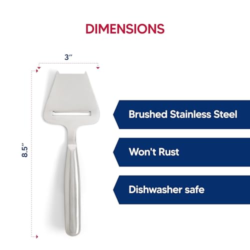 - صينية الجبن هذه مصنوعة من الستانلس ستيل المصقول، مما يجعلها مقاومة للغاية للبقع والصدأ، مما يضمن متانة تدوم طويلاً. يوفر هيكله القوي قبضة متوازنة، مما يسمح بشرائح دقيقة ورقيقة ومتساوية من الجبن الصلب وشبه الصلب مثل الشيدر والبارميزان والبروفولون، مما يجعله مثاليًا للاستخدام اليومي والتجمعات الخاصة.