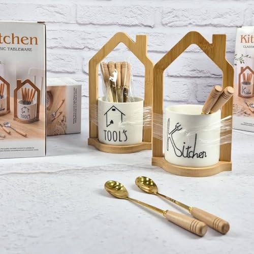 - ✅【تنظيم عملي ومرتب】الحامل الخشبي مع القاعدة البورسلين يضمن ترتيب القطع بشكل أنيق وعملي، مما يحافظ على ترتيب الطاولة ويتيح الوصول السريع للمعالق والشوك عند الحاجة، ويضيف لمسة من الانسجام والاحترافية على طريقة تقديم الحلويات والمقبلات للضيوف. 🪵