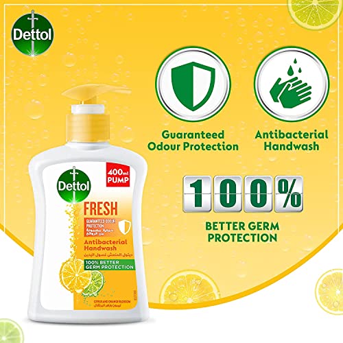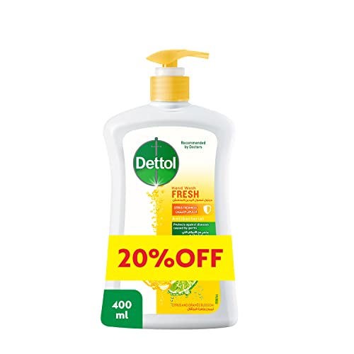 Dettol - مضخة صابون سائل فريش غسول اليد من ديتول أجل حماية فعالة الجراثيم وللنظافة الشخصية يحمي 100 نوع المسببة للامراض برائحة الحمضيات وزهور البرتقال 400 مل مع خصم 20%