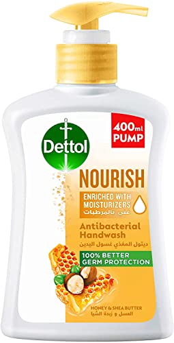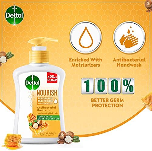 Dettol - غسول مضاد للبكتيريا لترطيب اليدين بزبدة الشيا والعسل من ديتول - 400 مل