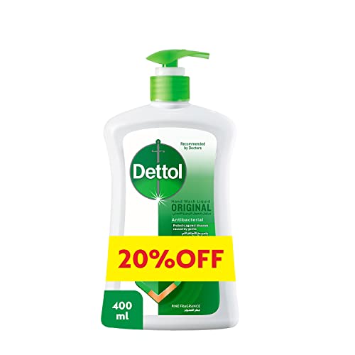 Dettol - مضخة صابون سائل اصلية لغسل اليدين من اجل حماية فعالة من الجراثيم والنظافة الشخصية (يحمي من 100 نوع جراثيم مسببة للامراض) من ديتول، برائحة الصنوبر، سعة 400 مل مع خصم 20%
