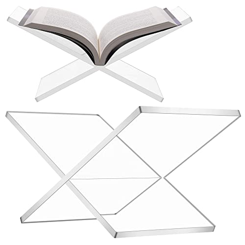 DEVEY BRANDS - حامل كتاب اكريليك مكون من قطعتين لعرض الكتب والمجلات والكتب المدرسية وكتب الطبخ رائع لديكور المنزل والمكتب، (شفاف)