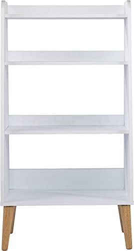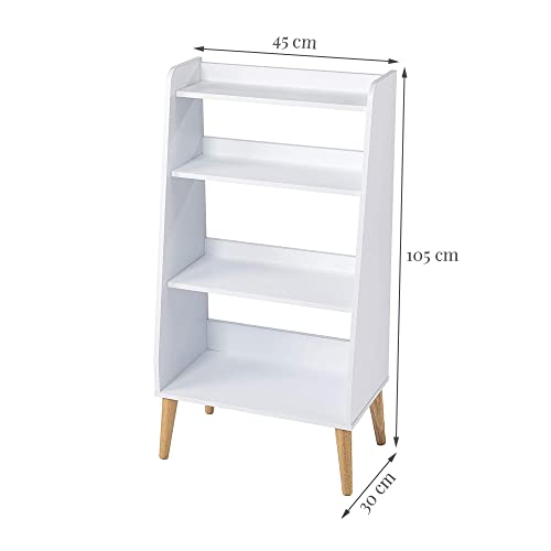 Device Bas with BROWN ART SHOPPEE - منظم كتب عصري بأربعة أرفف مع أرجل، رفوف تخزين كتب خشبية، منظم رفوف كتب مفتوحة، خزانة عرض قائمة بذاتها، حافظة مستندات بجيوب شفافة لغرفة المعيشة والنوم والمكتب - أبيض من ديفايس باس ويز براون ارت شوبر