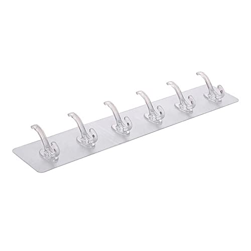 DEVICE OF URBAN INFOTECH - رف خطافات بلاصق ذاتي اللصق 6 في 1 من ديفايس اوف اوربان انفوتيك شفاف بحامل يثبت على الحائط شماعة فوط شديدة التحمل لا تترك اثرا حائط للحمام وغرفة النوم والمطبخ والمنزل عبوة 4 قطع بلاستيك