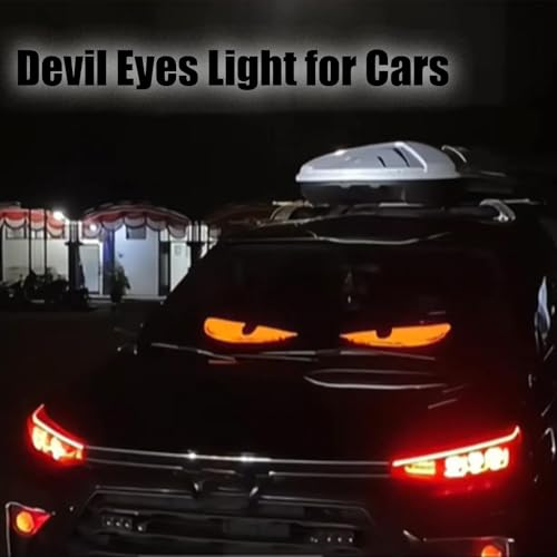 Mersidany - مصباح بتصميم عيون الشيطان للسيارات، شاشة ناعمة وملونة لنوافذ السيارات، شاشة ال اي دي مرنة وقابلة للبرمجة لنافذة السيارة، شاشة ذكية ومرنة وملونة وديناميكية قابلة للتخصيص للسيارة (12 سم × 60 سم)