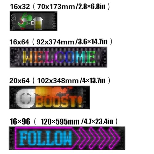 - 【شاشة ليد مرنة قابلة للبرمجة】شاشة ال اي دي مرنة قابلة للبرمجة (تطبيق + جهاز تحكم عن بعد) خفيفة ورقيقة للغاية، وسمكها حوالي 2 ملم. يمكن ثني المصباح بتصميم العين الملون الناعم لنوافذ السيارة وطيه وتشكيله ليناسب مجموعة متنوعة من الأسطح.