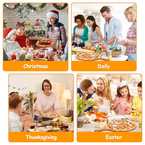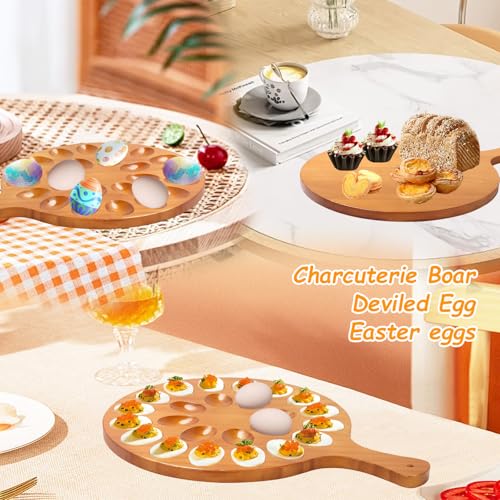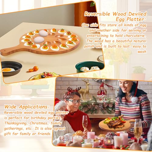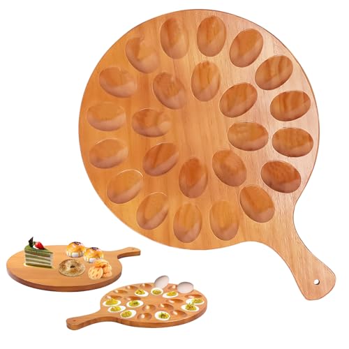 TOWEBOORY - طبق بيض شيطاني، صينية بيض خشبية، حامل بيض دائري 24 فتحة، لوح تشاركوتيري قابل للعكس، حاويات تقديم البيض لطاولة المطبخ وعيد الشكر (النوع ايه)