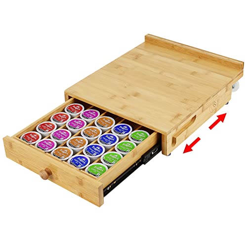 Devsana Designs - منظم محطة القهوة من ديفسانا، اكسسوارات البار، يناسب كوب كيه، حامل كبسولات كيوريج لسطح الطاولة، تخزين القهوة، علبة منزلقة للاجهزة مع درج، منظم ادراج، درج دوار لكبسولات القهوة